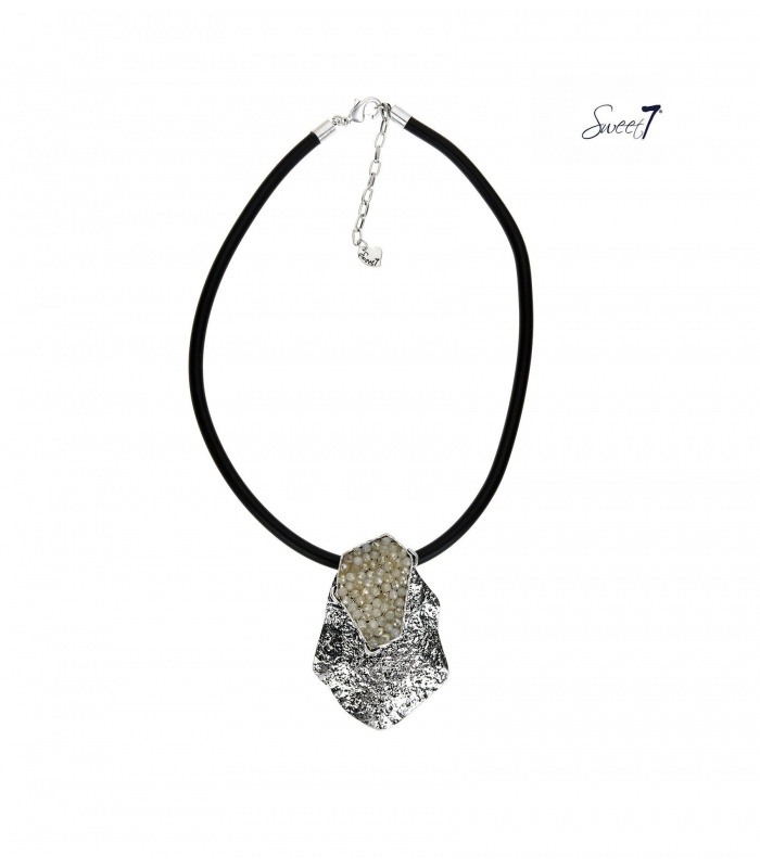 Zwarte rubberen koord halsketting met een zilverkeurige hanger.