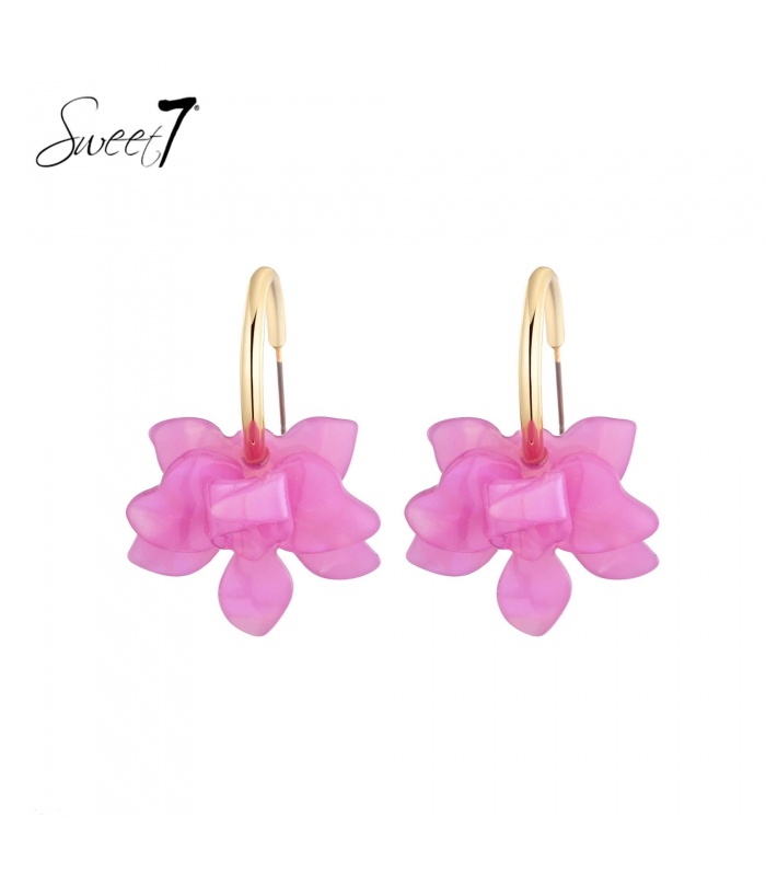 Hoe voeg je kleur toe zonder te overdrijven? Deze oorbellen van Sweet7 combineren een luchtige bloemvorm met een levendige roze tint. De semi-transparante blaadjes vangen het licht subtiel, terwijl de gouden ring een elegante basis vormt. Het resultaat is een speels maar stijlvol ontwerp dat moeiteloos opvalt zonder te schreeuwen.