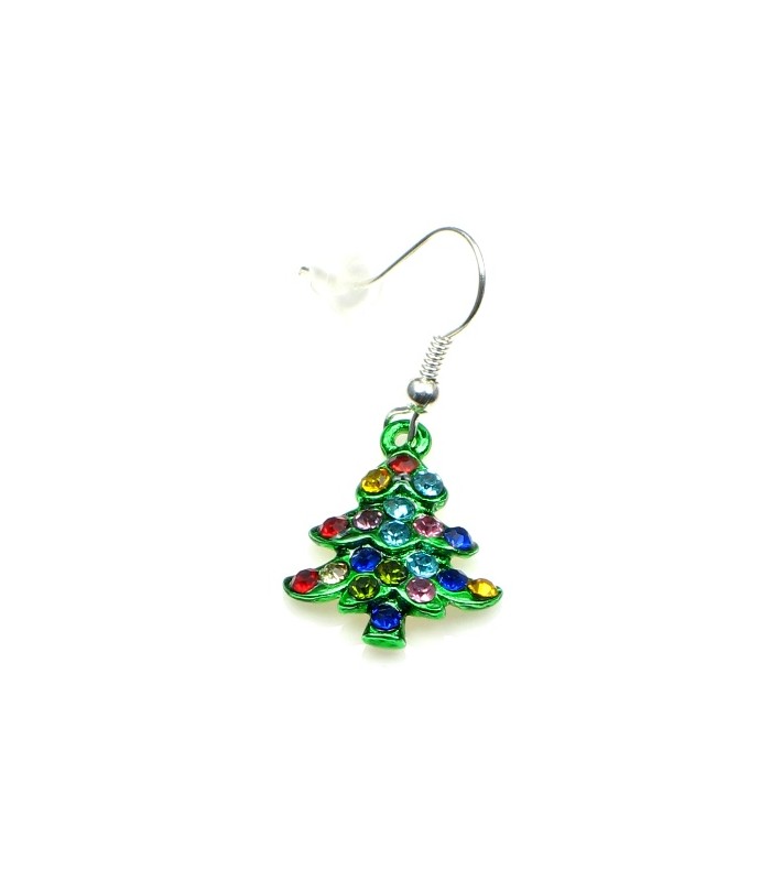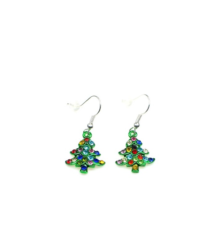 Deze prachtige oorhangers in de vorm van een kerstboom zijn versierd met sprankelende, gekleurde glassteentjes. Het feestelijke ontwerp en de levendige kleuren maken ze tot een perfecte aanvulling op je kerstoutfit.
