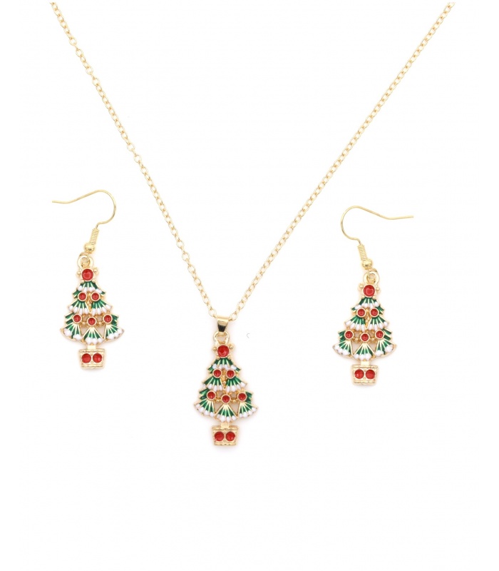 Op zoek naar een subtiele maar vrolijke kerst touch? Deze halsketting met bijpassende oorbellen brengt direct een feestelijke sfeer. De fijne kerstboompjes zijn gedetailleerd afgewerkt in goudkleur, met rode en groene accenten die perfect passen bij elke winterlook.