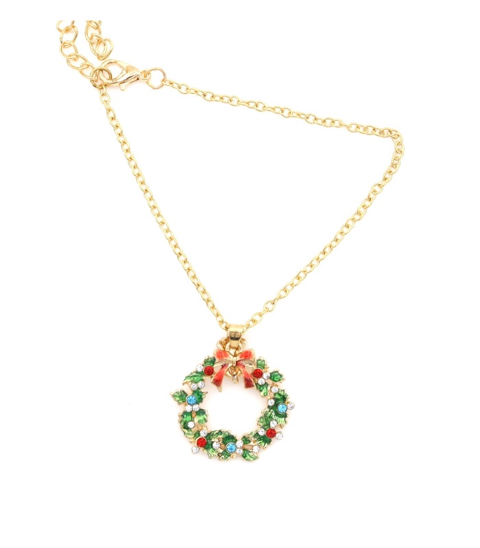 Hoe laat je je feestlook sprankelen met een set? Deze bijpassende kerst sieraden set met halsketting, oorbellen en broche zorgt voor een opvallend accent. Elke accessoire is ontworpen als feestelijke krans met bel, rode strik en kleurrijke strass. Een echte eyecatcher voor de feestdagen.