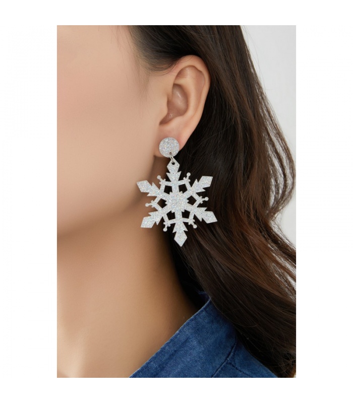 Feestelijke oorbellen met sneeuwvlok-design in wit.