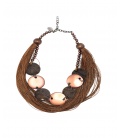 Bruine lange koordhalsketting met kokosnoot schijfjes .
