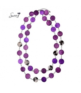 Koordhalsketting met ronde plaatjes voorzien van paars accent