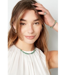 De ketting is gemaakt van polyester en koper. De ketting heeft een afmeting van 42 cm