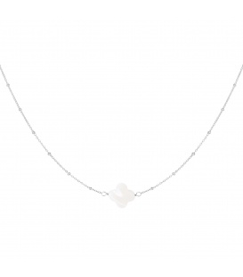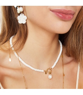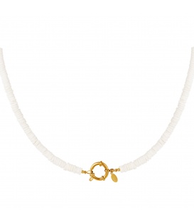 De ketting is gemaakt van stainless steel en schelp. De ketting heeft een afmeting 39 cm. De ketting is voorzien van een verlengkettinkje van 5 cm.