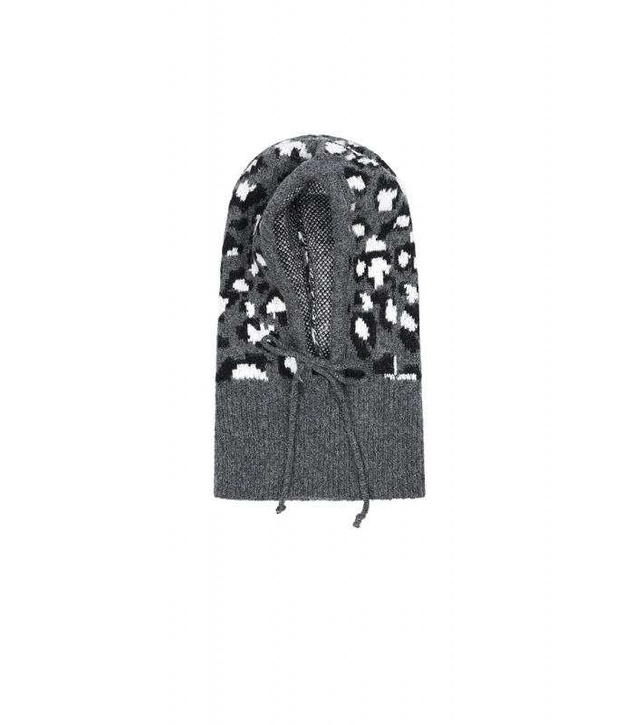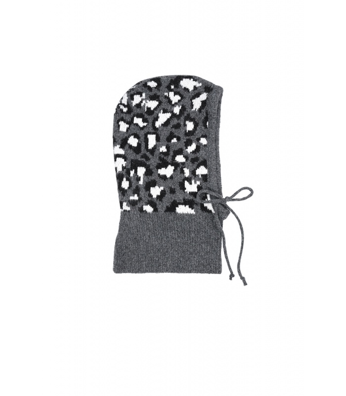 Donkergrijze balaclava met modieuze panterprint voor outdoor activiteiten.