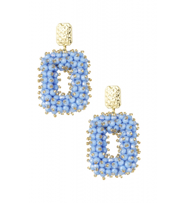 Onze oorhangers zijn prachtig om te zien .De combinatie van het diepe blauw en de glinsterende goudkleurige glaskralen geeft elke outfit een vleugje glamour en verfijning. Perfect voor elke gelegenheid, van een avondje uit tot een chique evenement.
