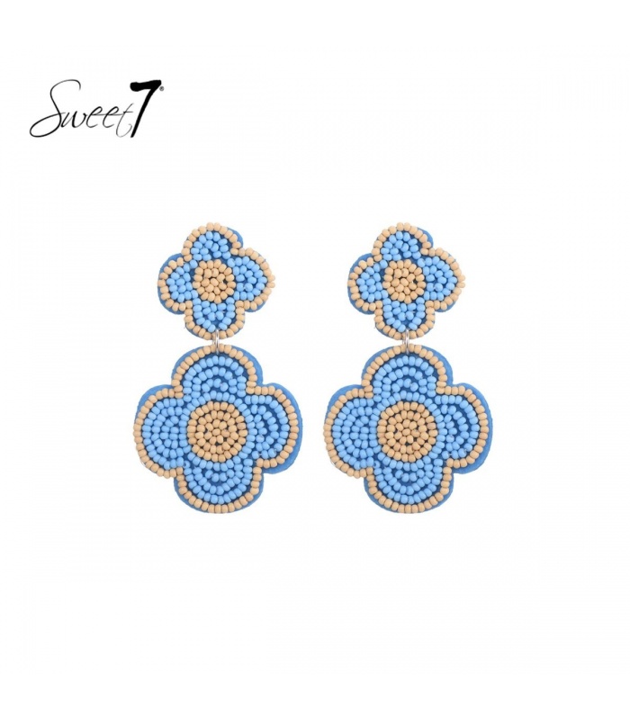 Blauwe gekleurde blauwe klavertje vier oorhangers, vakkundig vervaardigd met sprankelende kralen die elke outfit een vleugje elegantie geven. Deze oorhangers zijn niet alleen een stijlvolle toevoeging aan je garderobe, maar brengen ook een symbolische betekenis van geluk en voorspoed met zich mee. Perfect voor modebewuste individuen die graag een statement maken.
