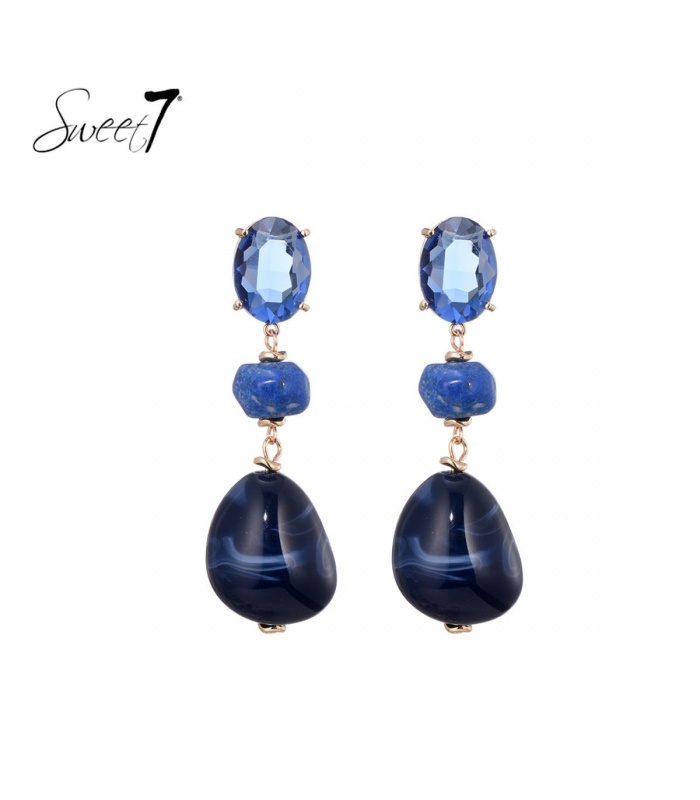Blauwe lange oorhangers met glas kralen