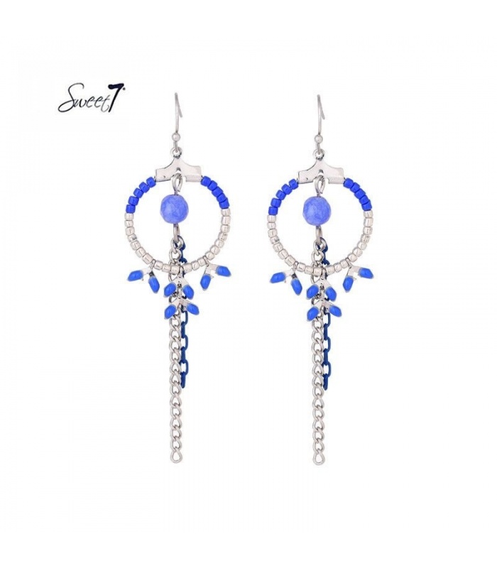 Zoek je een unieke toevoeging aan je outfit? Ontdek onze blauwe oorhangers, versierd met natuursteen kralen. Perfect voor elke gelegenheid!