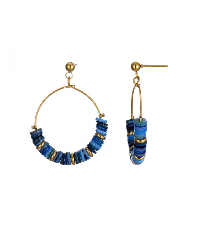 Deze elegante goudkleurige oorhangers zijn voorzien van subtiel blauw getint parelmoer, wat zorgt voor een verfijnde en tijdloze uitstraling. Het slanke ontwerp maakt ze geschikt voor zowel dagelijkse draag als speciale gelegenheden.