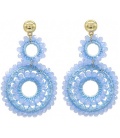 Goudkleurige oorringen met blauwe kraaltjes van schelp.