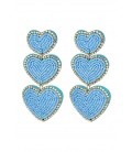 Licht blauwe oorhangers van 3 lagen glaskralen en goudkleurig oorstukje