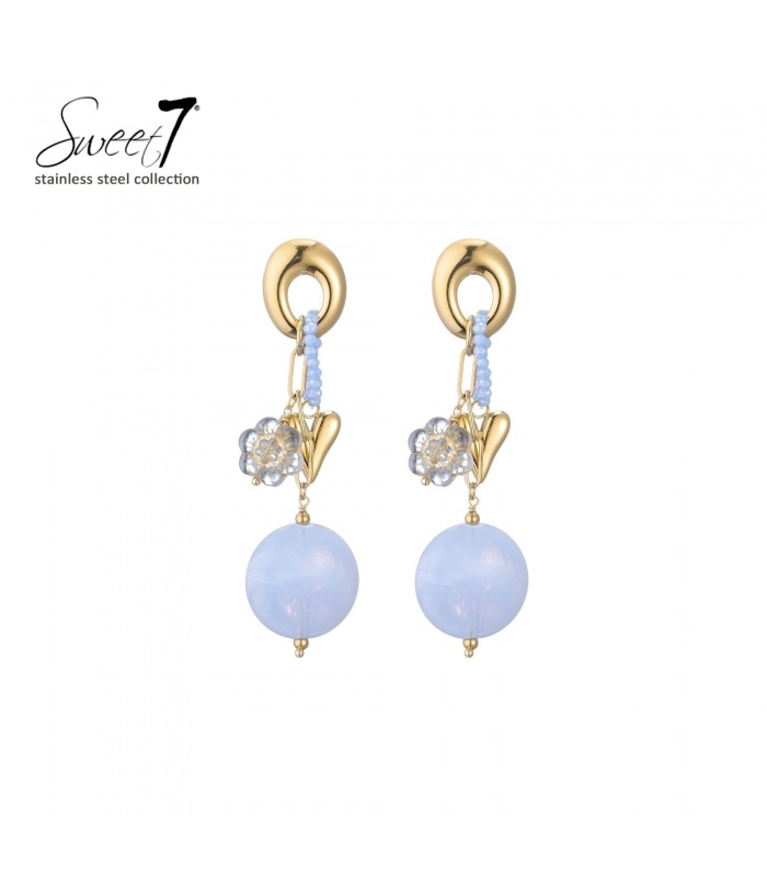 Wat vertellen deze oorbellen over jouw stijl? Ze laten zien dat jij durft te kiezen voor kleur en finesse. De goudkleurige oorbel draagt een zachte blauwe kraal en een verfijnde bloem. Deze oorbellen stralen elegantie uit en geven elke outfit een frisse, vrouwelijke touch.