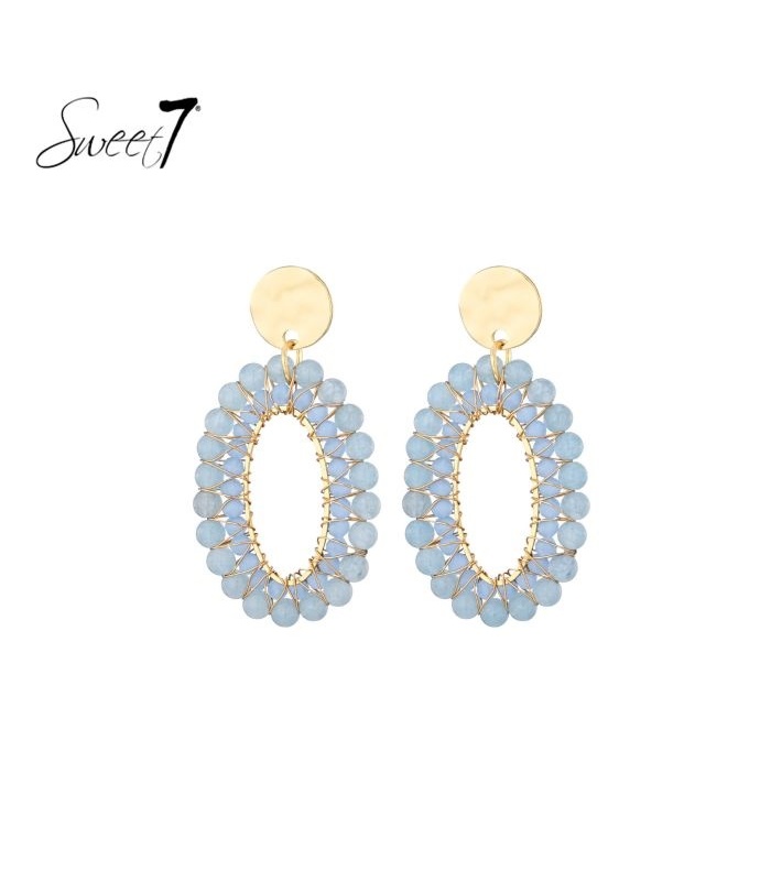 Welke sfeer brengen deze oorbellen met zich mee? Deze oorbel doet denken aan een zomerse avond aan zee. De zachte blauwe kralen vangen het licht als golven. Deze oorbellen geven je look een frisse en elegante touch als echte statement oorbellen.