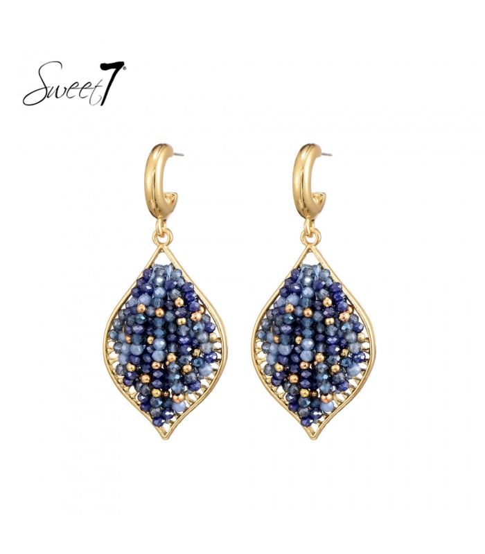 Zoek je oorbellen die kleur en karakter toevoegen aan je look? Deze oorbellen met blauwe kralen zijn stijlvol verwerkt in een druppelvormig goudkleurig frame. Het speelse patroon van fonkelende kraaltjes in marineblauw, kobaltblauw en goud zorgen voor een handgemaakte, luxe uitstraling.