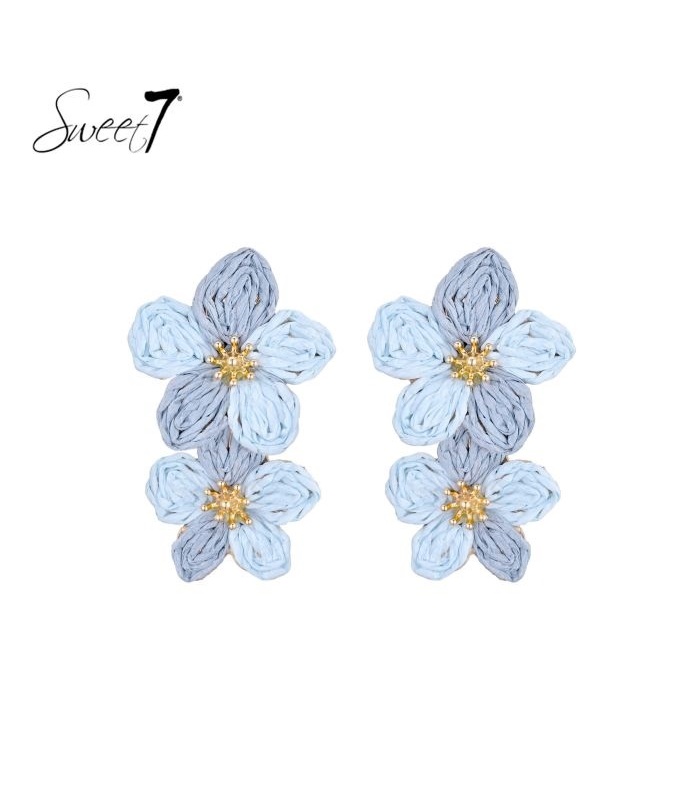 Zoek je een oorbel die direct opvalt? Deze oorbellen met dubbele bloem in lichtblauw en grijsblauw geven elke outfit een frisse touch. De goudkleurige kern zorgt voor een chic accent. Perfect als statement oorbellen bij een zomerjurk of casual look.