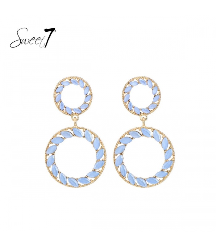 Hoe geef je je outfit een stijlvolle upgrade met een accessoire? Deze lichtblauwe oorbellen van Sweet7 brengen direct frisheid en elegantie. De verfijnde steentjes in gouden ringen zorgen voor een heldere, chique uitstraling die past bij elke gelegenheid, van lunchdate tot avondfeest.