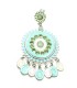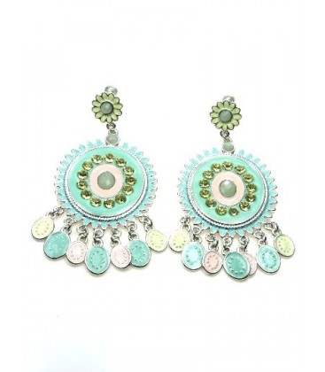 Oorbellen met mintblauwe inkleuring en strass. Lengte van de oorbel is 7,5 cm.