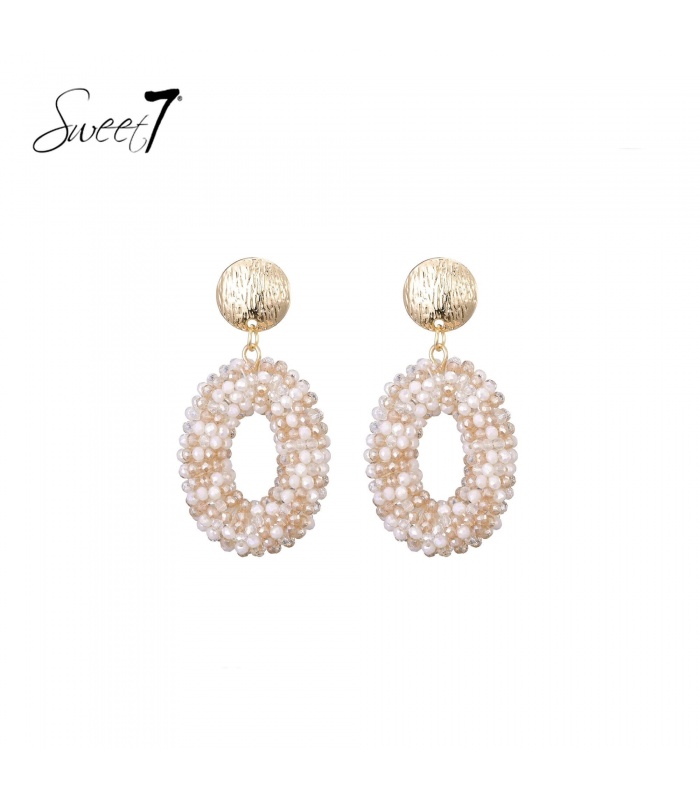 Zoek je een oorbel die luxe en speels combineert? Deze oorbellen tonen een gouden stud met een ring van fijne kralen. De mix van parelglans en warme tinten geeft een chique look. Perfect als statement oorbel of elegante dames oorbellen.