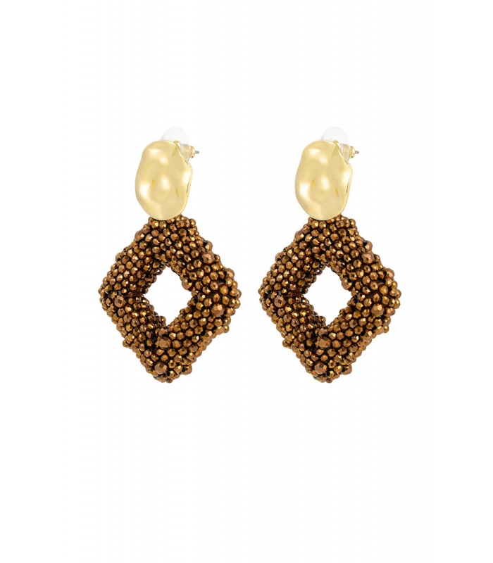 Ontdek de ultieme fashion statement - onze donkerbruine glaskralen oorhangers met een vleugje goud! Deze trendy oorsieraden zijn perfect voor elke gelegenheid en voegen een vleugje glamour toe aan je look.