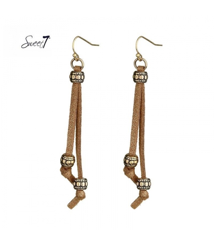 Leuke oorbellen met 2 bruine strengen en goudkleurige kralen