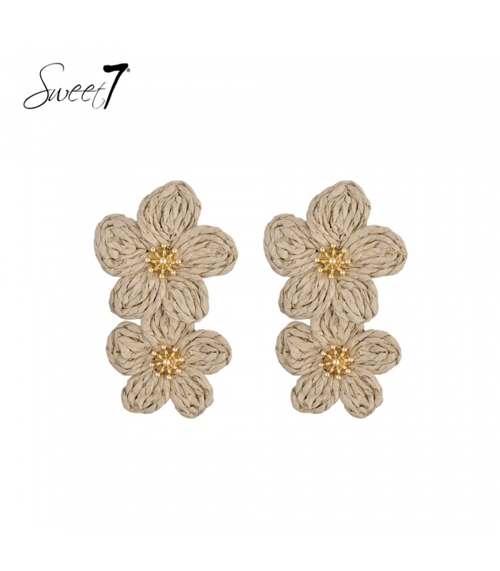 Hoe vang je de essentie van een zwoele zomerdag in een accessoire? Deze oorbellen doen precies dat. Met hun speelse bloemvorm en gevlochten raffia look brengen ze een vleugje boho chic in elke outfit. De subtiele camel tint en gouden details maken ze perfect voor zowel een casual look als een stijlvolle strandoutfit.