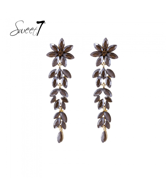 Wil je glamour met een subtiele twist? Deze oorbel straalt luxe uit dankzij de glanzende bruine kristallen in bloemvorm. De lange, sierlijke afhangende steentjes vangen het licht bij elke beweging. Ideaal voor een feest of chique diner.