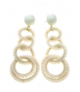 Beige oorhangers met glas steentjes De lengte van deze oorbel is circa 4 a 5 cm. Voor oren met gaatjes. De oorbellen zijn nikkelvrij. De oorbellen zijn voorzien van stoppertjes.