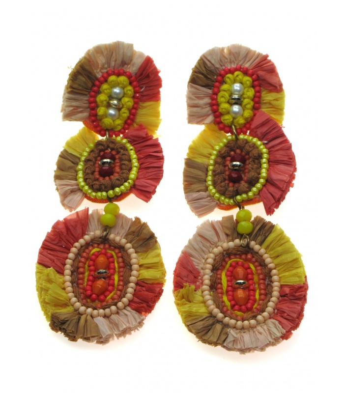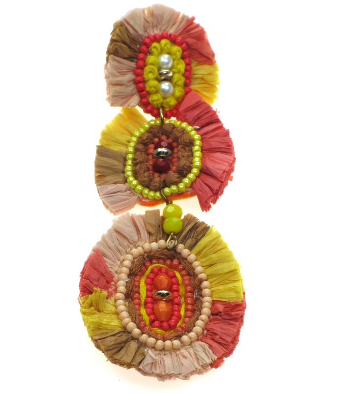 Ontdek de Stijlvolle Gekleurde Oorhangers met Kleine Kralen, Koord en Raffia