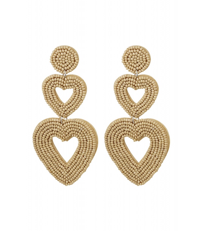 Trendy en Stijlvol: Beige Kralen Oorhangers met 2 Harten
