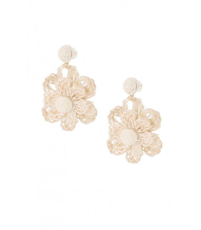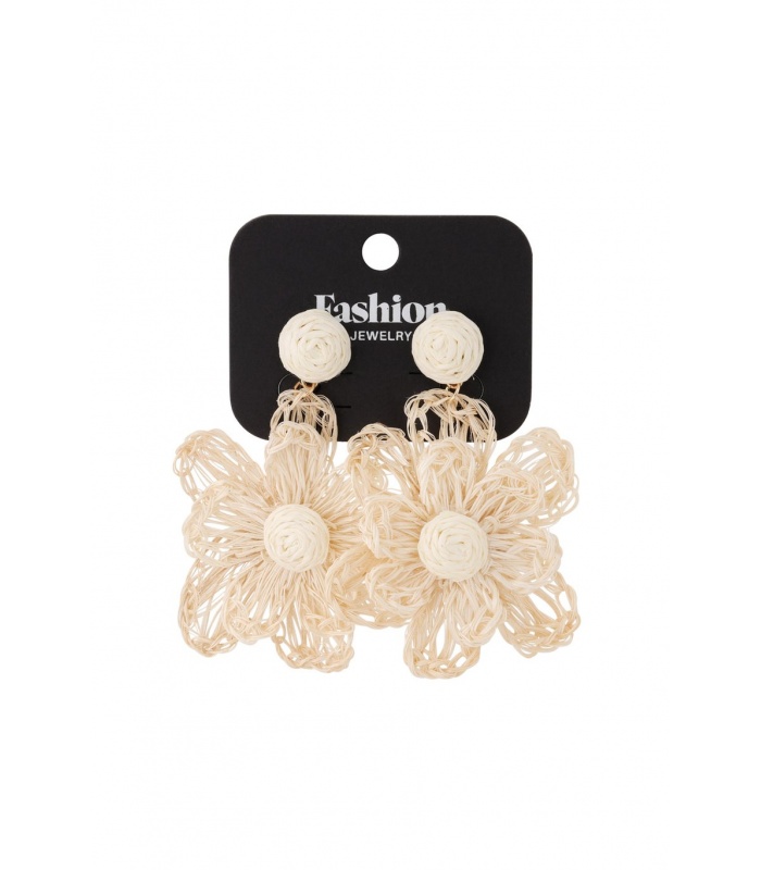 Deze charmante oorbellen zijn ontworpen met delicate gebroken witte bloemen, vervaardigd uit natuurlijk raffia. Het lichte materiaal en het bloemmotief geven een frisse en bohemien uitstraling, perfect voor zowel casual als feestelijke gelegenheden.