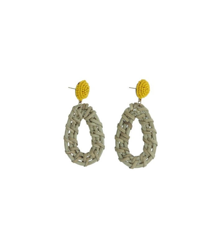 Naturel kleurige ovale oorhangers met een geel oorstukje.