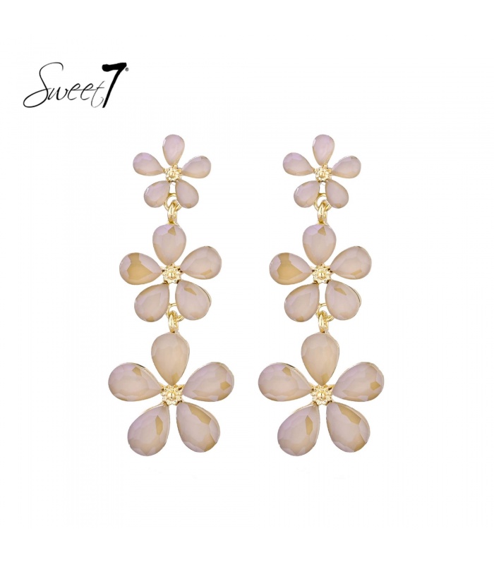 De speelse schakeling van drie bloemen creëert lengte en beweging. Deze lange oorbellen passen bij een elegante avondkleding. Combineer ze met opgestoken haar voor het mooiste effect. Een echte must have voor elke sieradenliefhebber.