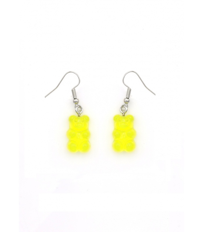 Hoe voeg je direct een vrolijk accent toe aan je outfit? Deze gele gummy beer oorbellen brengen licht en speelsheid in elke look. De transparante afwerking laat de kleur opvallen zonder te overheersen. Een verrassend detail dat perfect past bij elke fashion stijl..