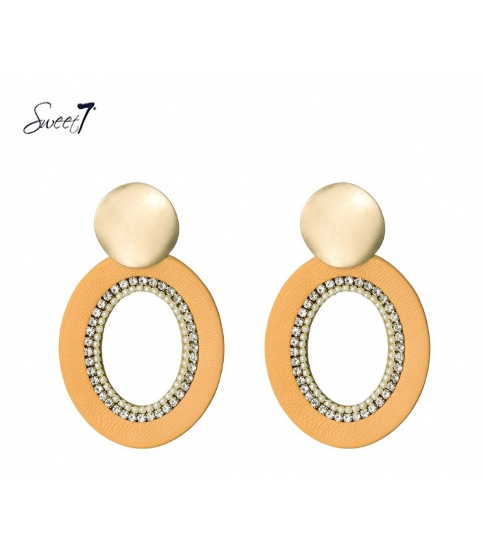 Gele oorbellen met een goudkleurig oorstukje en kraaltjes