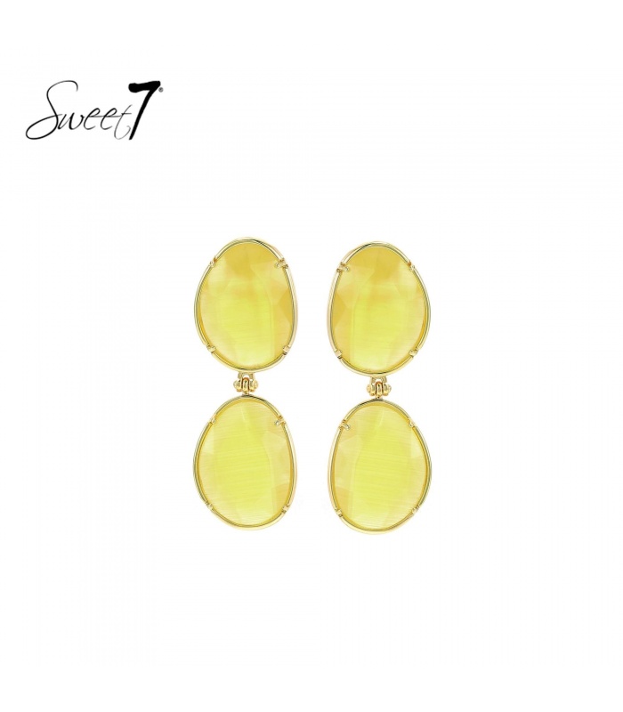 Hoe vang je het gevoel van een zomerochtend in een accessoire? Deze oorbellen van Sweet7 doen precies dat. De zachtgele stenen vangen het licht op een elegante manier en geven je gezicht een warme glow. De dubbele ovale vorm zorgt voor een sierlijk, vloeiend effect dat past bij elke gelegenheid.