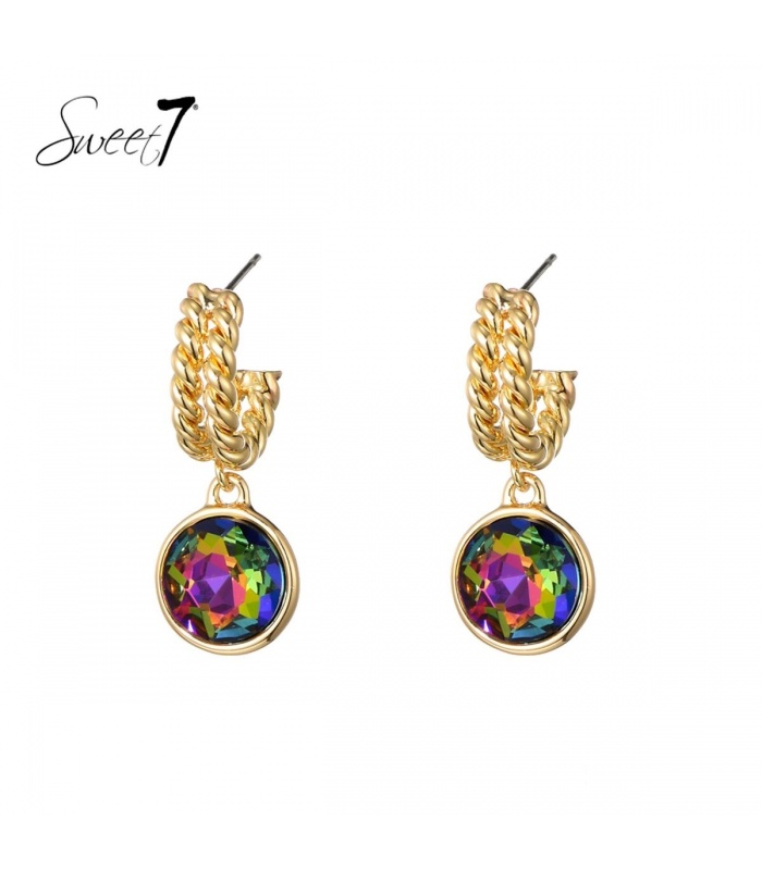 Goudkleurig gedraaide oorhangers met een gekleurde bedel.