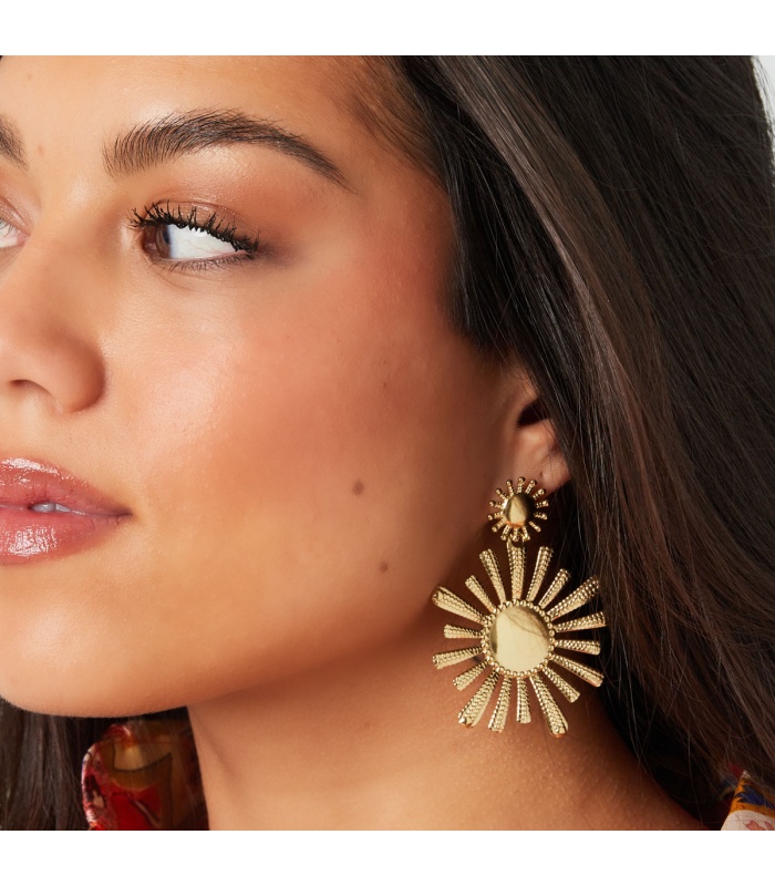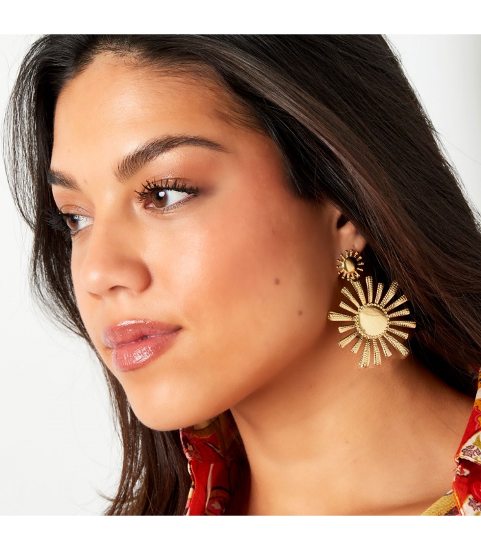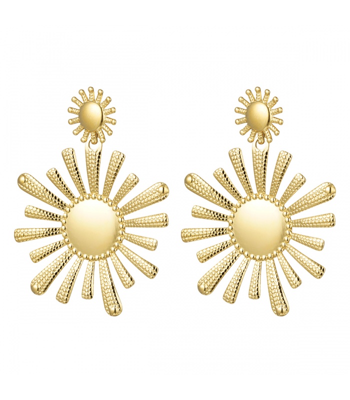 Met de goudkleurige bloemen oorhangers van Yehwang ben je altijd op de hoogte van de laatste mode en zet je een statement. Ze zijn gemakkelijk te combineren met elke stijl, van casual tot chic, en zorgen voor een verfijnde touch aan elke look. De oorhangers zijn verkrijgbaar in één maat en passen daarom perfect bij iedereen.