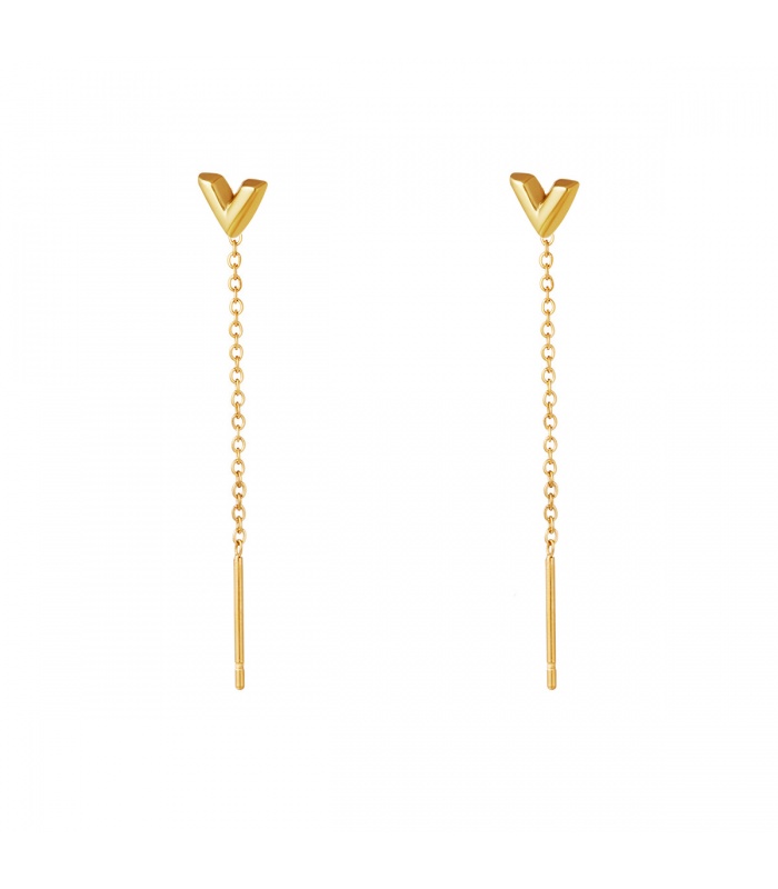 Goudkleurige hangende ketting oorbellen met een pijlbedel.