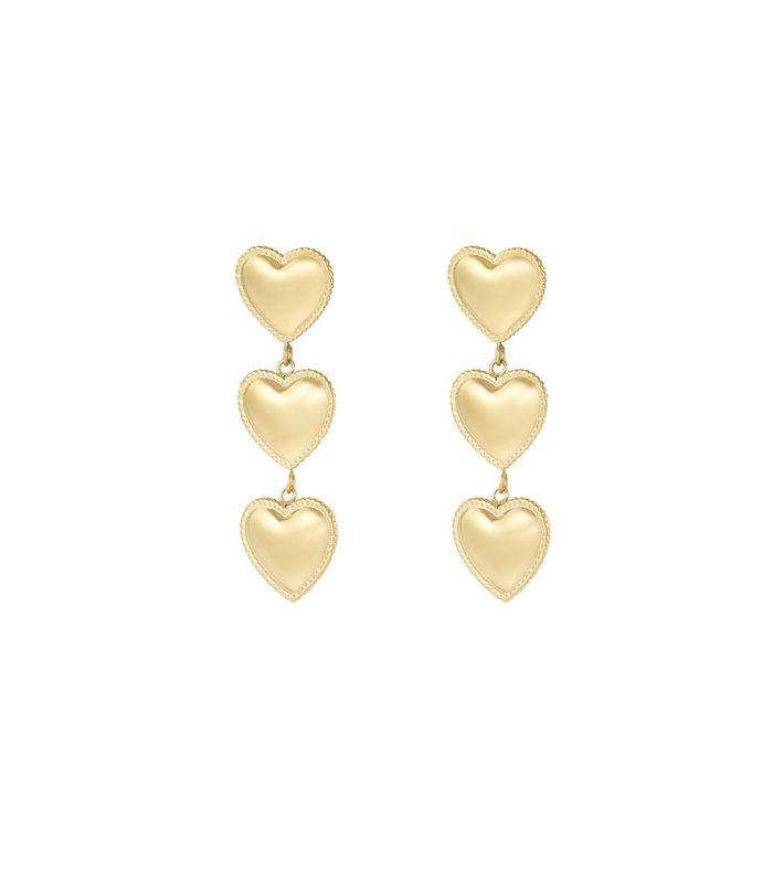 Deze goudkleurige harten oorhangers zijn het perfecte sieraad voor een stijlvolle, romantische look. De elegante harten, subtiel afgewerkt met een glanzende gouden laag, voegen een vleugje verfijning toe aan elke outfit. Of je nu kiest voor een casual look of een chique avondje uit, deze oorhangers passen bij elke gelegenheid. Hun tijdloze ontwerp maakt ze een must-have in iedere sieradencollectie.