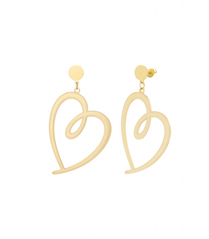Goudkleurige harten oorhangers met een bewerkte rand.