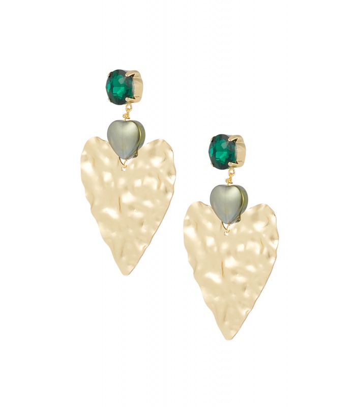 Deze goudkleurige oorhangers zijn versierd met een charmant hartontwerp en een sprankelend groen glasteentje. De warme goudtint in combinatie met de levendige groene steen creëert een luxueuze uitstraling, ideaal voor zowel dagelijkse outfits als formele gelegenheden.