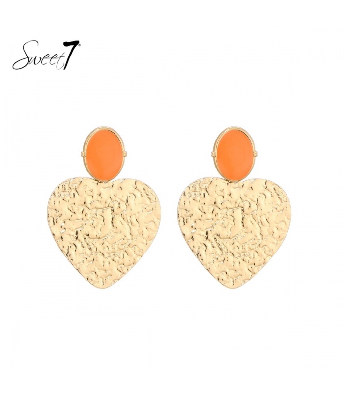 Sweet7 staat bekend om zijn trendy accessoires van hoge kwaliteit, en deze goudkleurige oorhangers met blauw oorstukje en goudkleurige harten met oranje oorstukje vormen daarop geen uitzondering. Ze zijn zorgvuldig ontworpen en vervaardigd met oog voor detail, waardoor ze een echte blikvanger zijn. Met deze oorbellen om je oren zul je zeker bewonderende blikken en complimenten ontvangen.