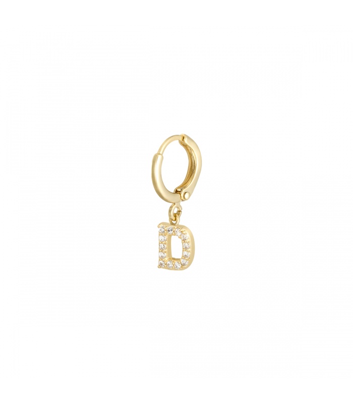 Goudkleurige oorbel met zirkonia steentjes en initiaal D
