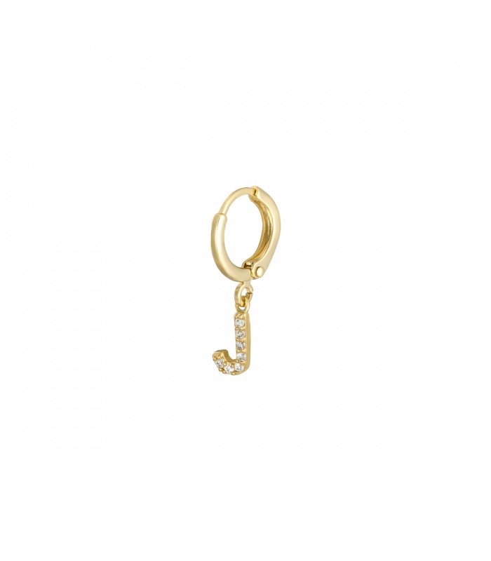 Goudkleurige oorbel met zirkonia steentjes en initiaal J