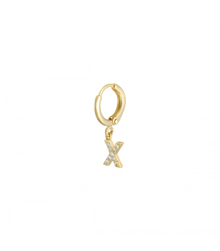 Goudkleurige oorbel met zirkonia steentjes en initiaal X
