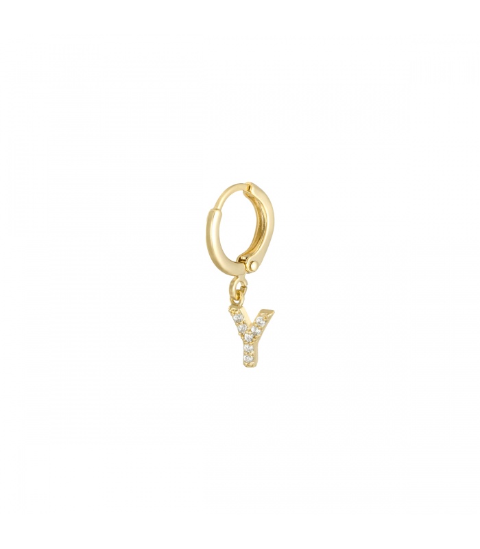 Goudkleurige oorbel met zirkonia steentjes en initiaal Y.