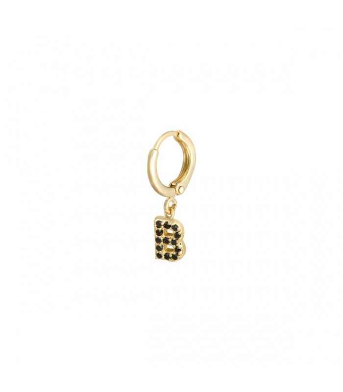 Goudkleurige oorbel met zwarte zirkonia steentjes en initiaal B